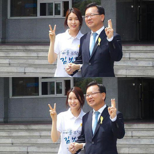 탤런트 윤세인이 대구시장에 출마한 부친 김부겸 새정치민주연합 후보 지지 유세현장에서 남자친구가 있다고 공개했다.