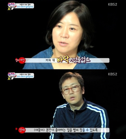 김정태 아내 전여진 씨는 25일 오후 방송된 KBS2 '해피선데이- 슈퍼맨이 돌아왔다' 28회에 출연해 김정태의 학교생활을 폭로했다.