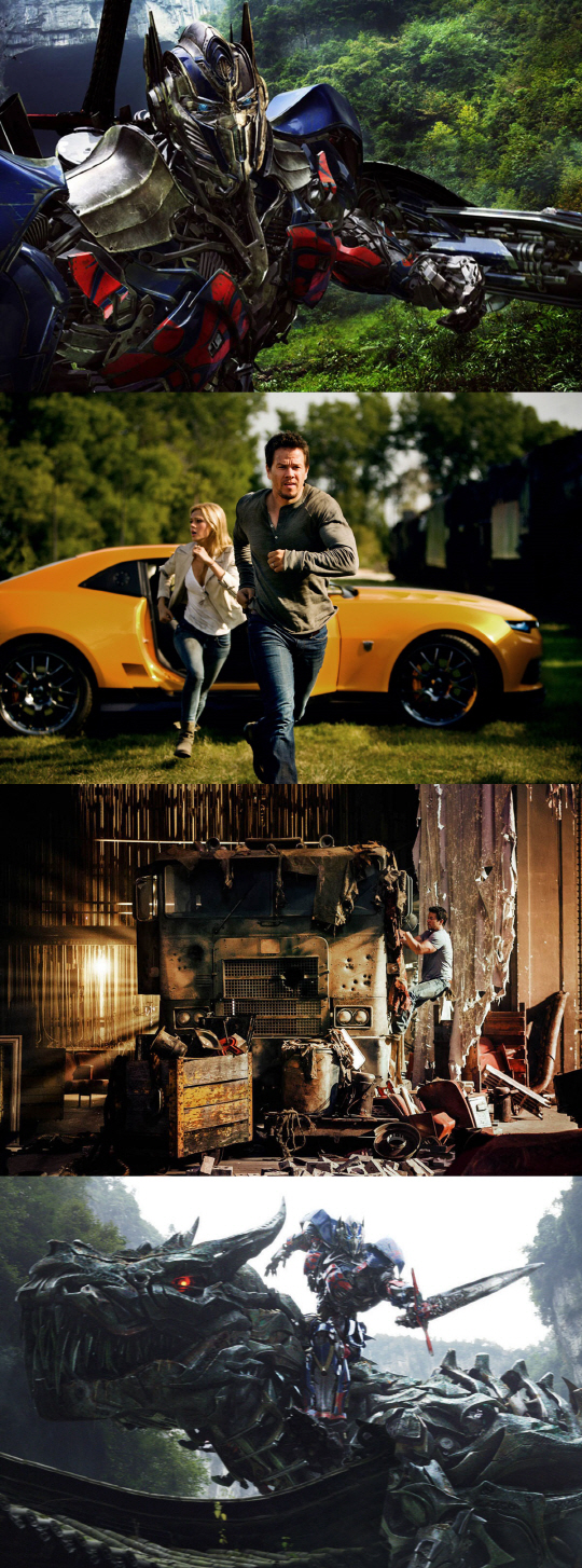 한편, 이번에 공개된 영화 스틸은 이전 '트랜스포머' 시리즈보다 한층 업그레이드 된 새로운 패러다임을 보여줄 '트랜스포머4'의 남다른 스케일을 담고 있다. 먼저 공룡을 연상시키는 '다이노봇'과 변화된 비주얼의 옵티머스 프라임은 압도적인 위용을 드러내며 관객들의 시선을 끄는 데 이어 거대한 위기 속 어떠한 활약을 펼칠지 기대감을 고조시킨다. 또한 이번 작품의 새로운 주역인 '케이드 예거'와 그의 딸 '테사'를 통해 '트랜스포머4'에서 펼쳐질 스토리에 대한 호기심을 자극하는 데 이어 마크 월버그와 니콜라 펠츠의 연기 호흡을 기대케한다. 전에 볼 수 없던 긴장감 넘치는 스펙터클한 영화 스틸은 치열한 전투를 예고하고 있어 영화를 기다리는 팬들에게 가슴 뛰는 흥분을 전한다.
