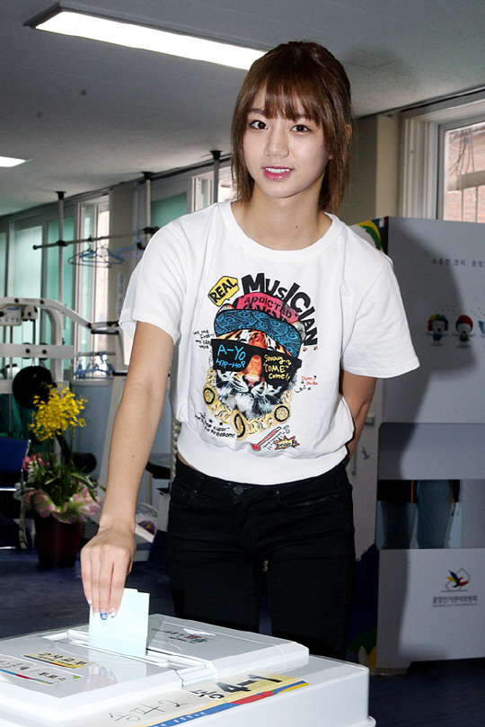 2NE1의 공민지, 애프터스쿨의 가은, 틴탑의 니엘 등이 생애 첫 투표권을 행사했다.