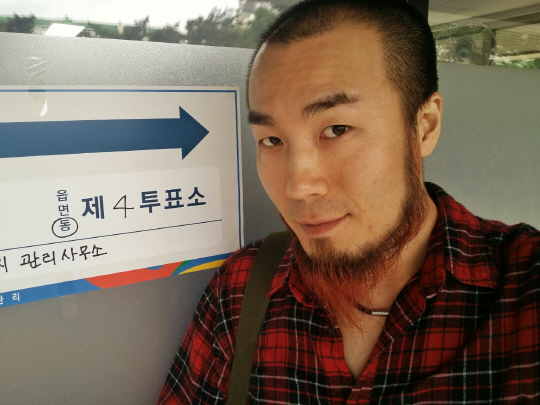 인기 록밴드 체리필터의 드러머 손스타가 투표를 마치고 인증샷을 올려 화제를 모았다.
