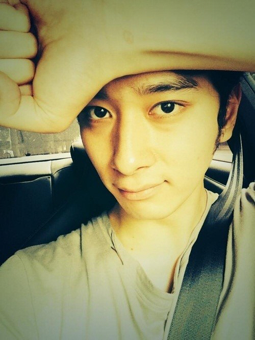 사진 속 황찬성은 차 안에 앉아 이마 위에 손을 댄 채 브이자 포즈를 취하고 있는 모습이다.