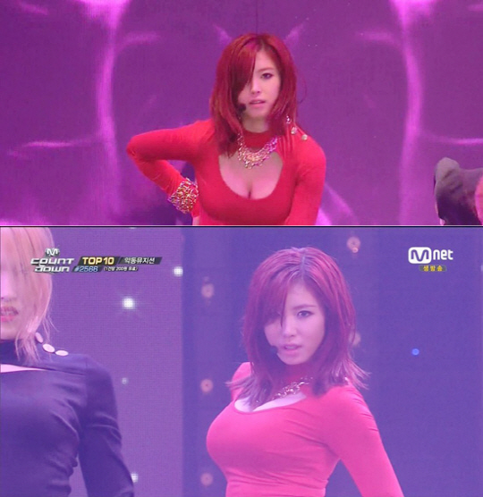 특히 전효성은 가슴라인이 드러나는 붉은색 계열의 타이트한 의상을 입고 등장해 남성 팬들의 환호성을 이끌어냈다.
