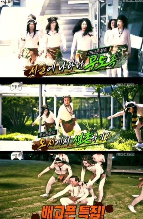 7일 방송되는 MBC 예능프로그램 '무한도전'에서는 멤버들이 아마존에서 온 원주민으로 분해 수렵과 채취만으로 하루 동안 서울에서 생활하기에 나선 모습이 공개된다.