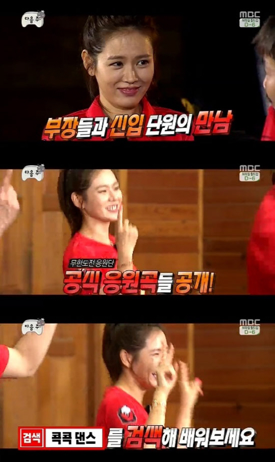 한편 무한도전 손예진의 콕콕댄스를 접한 네티즌들은 "손예진 무한도전 응원단 콕콕댄스 대박 귀여워", "손예진 무한도전 응원단 콕콕댄스 저절로 따라하게 되네", "손예진 무한도전 콕콕댄스 완전 기대된다", "손예진 무한도전 콕콕댄스 다음주 빨리 왔으면 좋겠다"등의 반응을 보이고 있다. <스포츠조선닷컴>