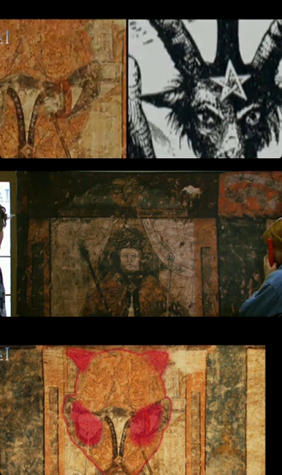 이는 당시 헨리 8세의 종교개혁으로 참수 당했던 영국 각지의 수도사들이 그린 그림으로 그들은 벽화 속에 사탄의 얼굴을 숨겨놨던 것.