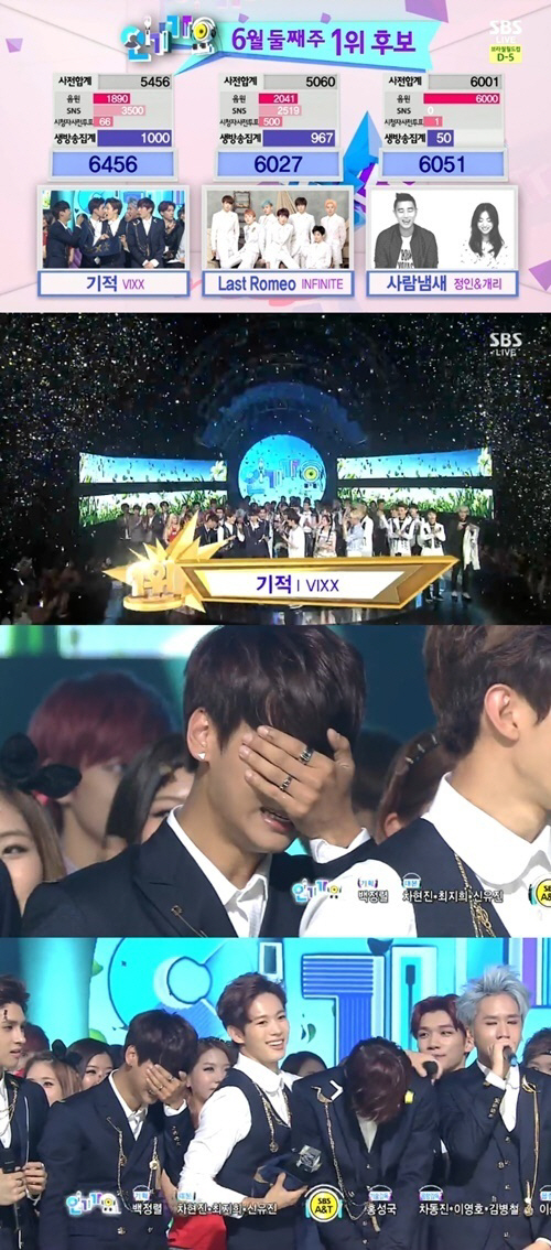 빅스 1위, 인기가요 1위후보 인피니트 제치고 1위 영광 '폭풍 눈물'