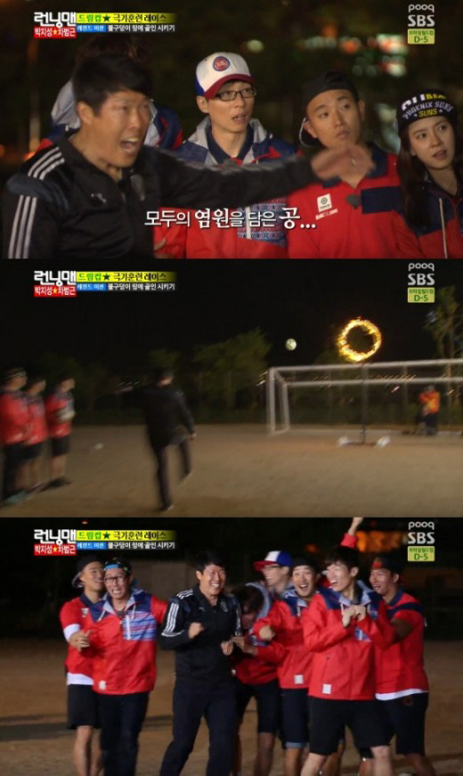 8일 방송된 SBS '일요일이 좋다-런닝맨'(이하 런닝맨)에서는 축구레전드 박지성과 설기현, 차범근 등이 게스트로 출연한 가운데 '2014 아시안 드림컵'을 위한 극기 훈련 레이스가 전파를 탔다.