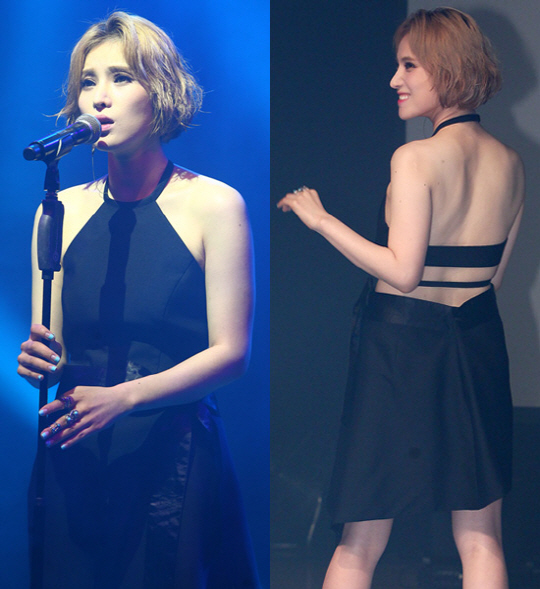 특히 이날 거미는 뒤태를 노출시키는 파격적인 의상으로 현장을 찾은 취재진들의 플래쉬 세례를 받았다.