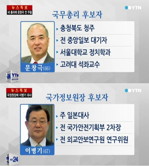 또 박근혜 대통령은 국가정보원장 후보자로 이병기 주 일본대사를 내정했다.