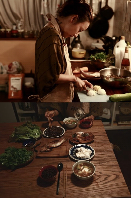 식탁 위 정갈하고 소박한 음식이 놓여진 사진 아래 이효리는 "흑미밥은 안 불리고 했더니 생쌀 느낌. 고사리는 생선굽다 태워버림. 옥돔은 겉은 타고 안은 안 익어버림. 찌게용 두부가 아니라 연두부를 사와서 순두부 된장찌게가 되버림. 남은 연두부 썰다 다 으깨져서 저 모양되버림. 친정 엄마랑 시어머니께서 보내주신 밑반찬으로 위기 모면"이라는 글을 남겼다.