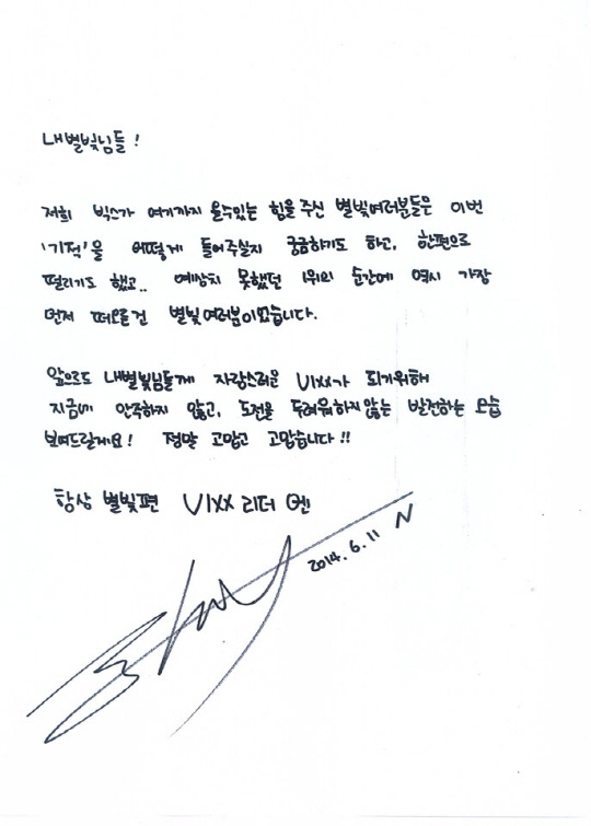 이어 "앞으로도 내 별빛님들께 자랑스러운 VIXX가 되기 위해 지금에 안주하지 않고, 도전을 두려워하지 않는 발전하는 모습 보여드릴게요! 정말 고맙고 고맙습니다!"라며 응원해주고 사랑해 준 팬들에게 정성 가득한 인사를 건넸다.