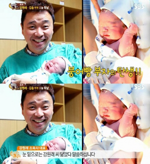 11일 방송된 SBS '한밤의 TV연예'에서는 강원래 김송 부부의 득남 소식이 전파를 탔다. 이날 강원래 김송 부부는 결혼 13년 만에 임신에 성공했고 이날 출산의 기쁨을 안았다.