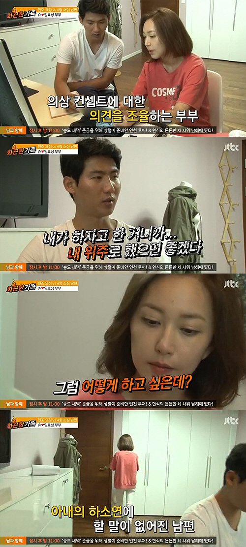 슈-임효성 부부는 지난 11일 방송된 JTBC '화끈한 가족'에서 쇼핑몰 의상 콘셉트에 대한 의견을 나누기 위해 회의를 했다.