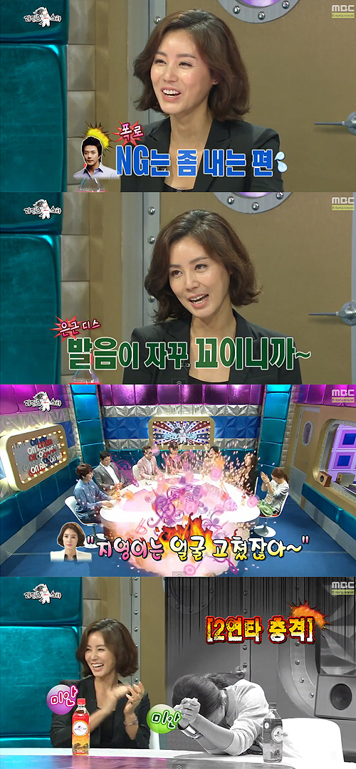 MC들은 "김성령이 게스트 중 외모순위를 매겼는데 1위가 강수진, 2위로 자신을 꼽으며 '지영이는 고쳤잖아'라고 말했다더라"고 폭로해 김성령을 당황케 했다.