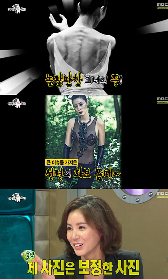 이날 방송에서는 세 사람의 몸매가 돋보이는 사진이 공개됐다. 특히 최근 화제를 모은 김성령의 파격 란제리 화보는 출연진과 MC들의 시선을 끌었다.