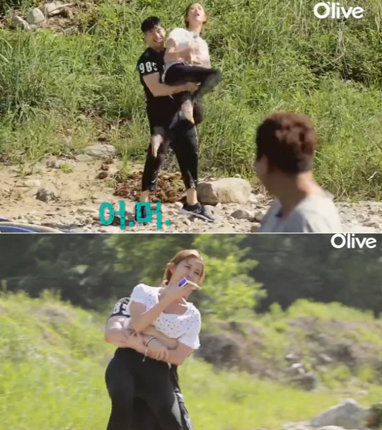 특히 손호영이 채리나를 물가로 옮기려는 순간 민망한 장면이 연출됐다. 손호영의 손이 채리나의 허벅지 사이로 들어간 것. 이를 본 '셰어하우스' 식구들은 웃음을 참지 못했고, 이상민은 "영자 누나 사건 이후 최고의 스틸컷이 나올 것 같다"고 말해 손호영을 당황하게 했다.