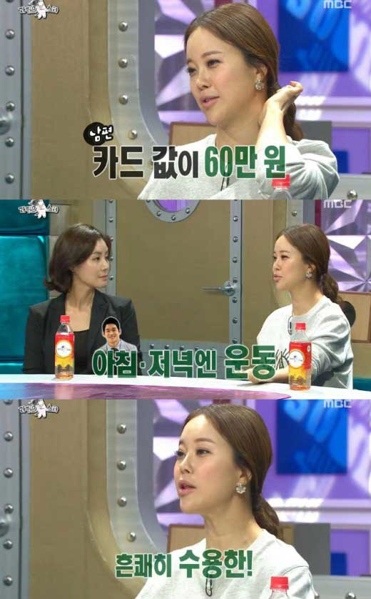 정석원은 직불카드와 신용카드가 하나씩 있는데 결제 문자가 내게 온다"며 "결혼을 하고 몇 달 뒤에 보니 한 달 카드 값으로 60만 원정도만을 쓰더라"고 밝혔다.