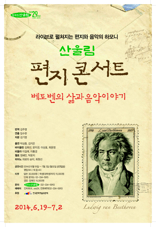 '편지 콘서트'의 첫번째 주인공은 다름아닌 루드비히 반 베토벤이다. 오는 19일 개막하는 '베토벤의 삶과 음악 이야기'(연출 임수현)에서 만날 수 있다.