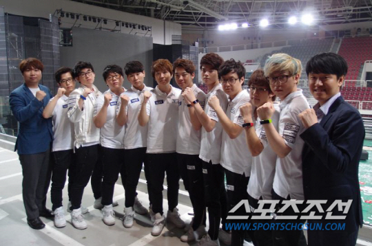 ◇지난 8일 열린 '리그 오브 레전드 마스터즈 2014'에서 SK텔레콤 T1을 꺾고 우승을 차지한 삼성 갤럭시팀.