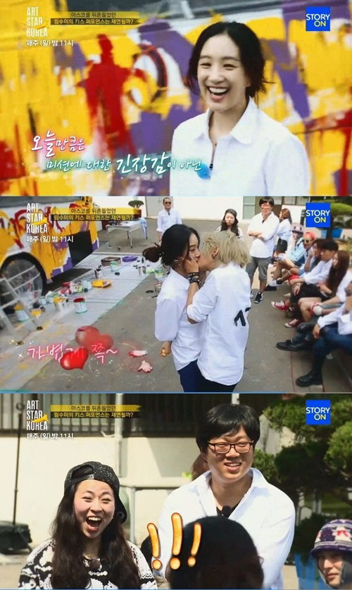 '아트 스타 코리아'에서 정려원과 림수미가 키스 퍼포먼스를 선보이며 눈길을 끌고 있다.