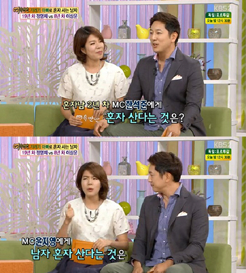 이날 방송에서 MC 한석준은 "혼자 산다는 것은 어떤 의미이냐"는 질문에 "아주 멋있을 수도, 아주 초라할 수도 있다"고 말해 시청자들을 안타깝게 했다.