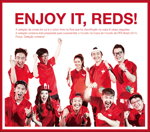 이 광고는 현지시간 16일 '폴라 데 상파울로' 스포츠섹션 9면에 반면광고로 게재됐으며 빨간색 디자인에 대한민국 공식 응원문구인 '즐겨라, 대한민국!(ENJOY IT, REDS!)'을 헤드라인으로 강조했다.