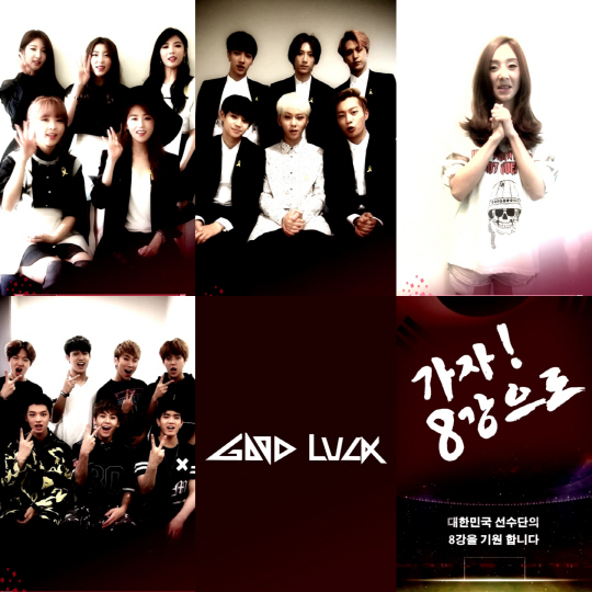 포미닛, 비스트, 지나, 비투비가 한마음으로 국가대표 축구 선수단의 선전을 기원하며 '굿럭'을 외치는 응원메시지를 공개했다.