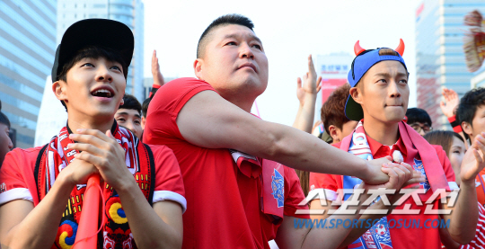 18일 오전 서울 종로구 세종로 광화문 광장에서 '2014 브라질월드컵' H조 한국 대 러시아 예선경기 거리응원이 펼쳐졌다. KBS2 '우리동네 예체능' 응원단이 응원을 펼치고 있다.