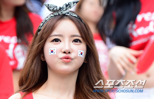 18일 오전 서울 종로구 세종로 광화문 광장에서 '2014 브라질월드컵' H조 한국 대 러시아 예선경기 거리응원이 펼쳐졌다. 이날 미녀들의 응원이 눈길을 끌었다.