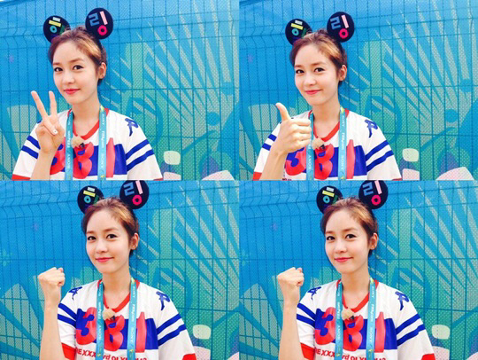 공개된 사진 속 성유리는 '힐링'이라는 메시지가 담긴 머리띠를 착용했다. 특히 성유리는 환한 미소와 브이 포즈 등으로 보는 이들의 눈길을 끌었다.