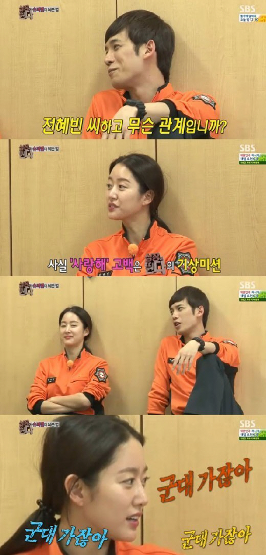 그러나 전혜빈은 "기웅아, 난 너의 마음을 받아줄 수 없다. 너 군대 가잖아"라고 돌직구를 날려 웃음을 자아냈다.
