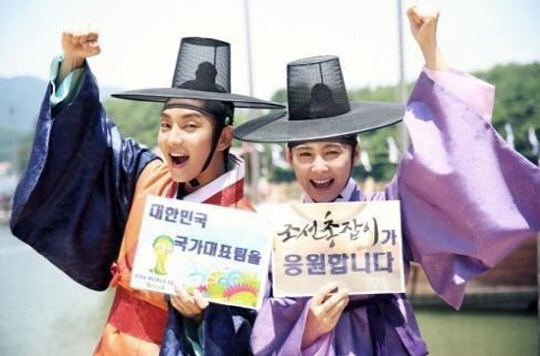 나란히 조선의 선비 복장을 한 이준기와 남상미는 "이번 주는 마산, 안동, 속초를 돌며 촬영을 이어간다. 많은 분들이 기대하시던 제작발표회 일정도 기다리고 있다. 몸이 피곤하더라도 18일 대한민국 첫 예선 경기는 무조건 사수할 예정이다"며 촬영 현장 응원대열에 동참할 것임을 밝혔다.