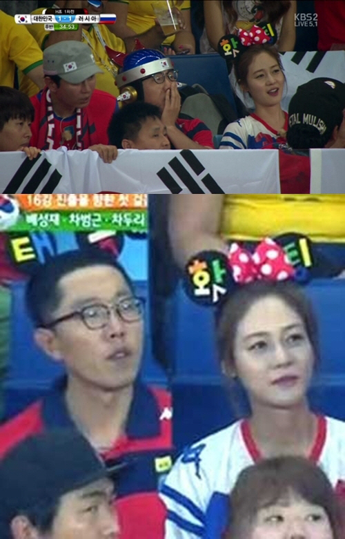 배우 성유리가 골프코치 겸 골퍼 안성현과 열애를 인정한 가운데 성유리의 모습이 러시아전 중계 화면에 포착됐다.