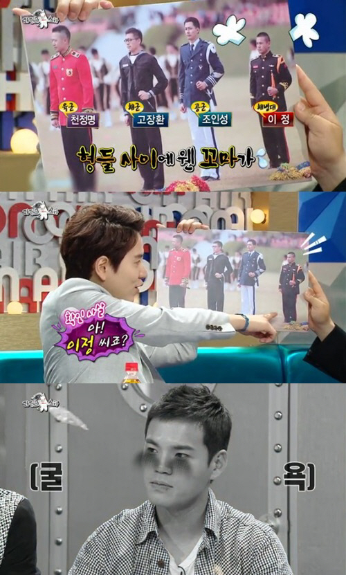 공개된 사진은 지난 2009년 국군의 날 행사에서 찍힌 사진으로, 육군 대표 천정명, 해군 대표 고장환, 공군 대표 조인성, 해병대 대표 이정의 모습이 담겨있다. 특히 이정은 세 사람과는 달리 유난히 작아 MC들의 놀림을 받았다.