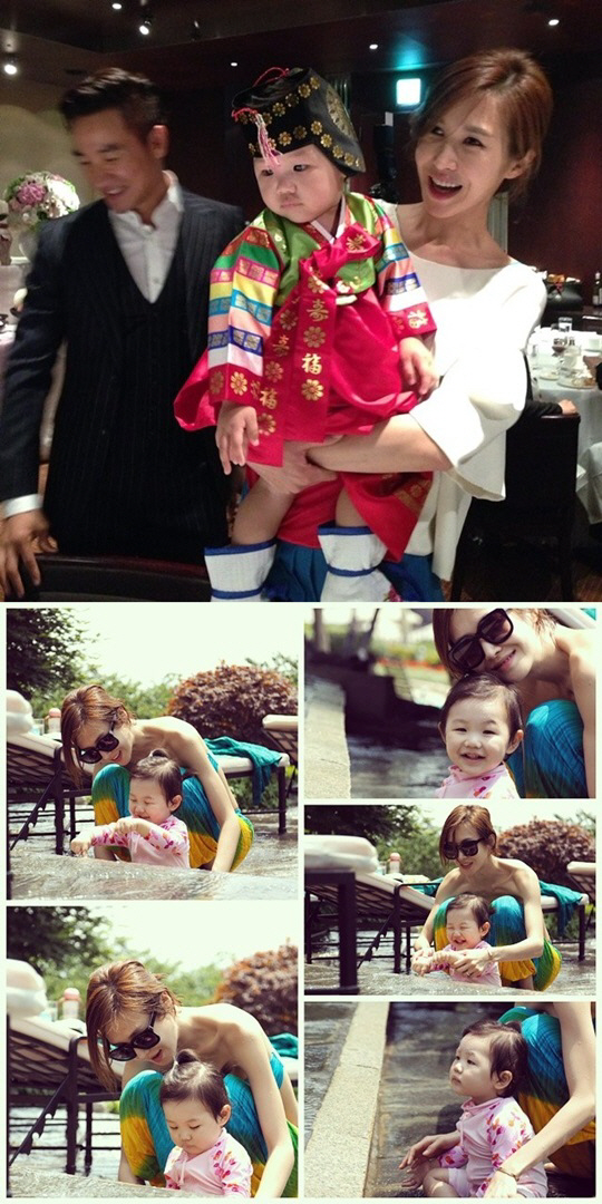 공개된 사진 속에는 윤혜진과 엄태웅, 딸 지온 양의 모습이 담겼다. 특히 지온 양은 엄마 윤혜진이 어린시절 착용했던 돌복을 입고 있어 눈길을 끌었다.