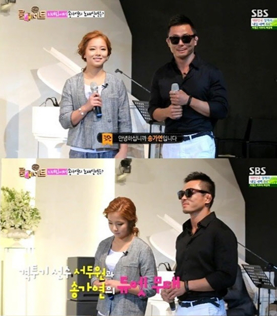 특히 이날 송가연은 축가를 부르기 위해 아침 일찍 격투기 선수 서두원과 만나 노래 연습을 시작했다. 가수 김범수 박선주의 듀엣곡 '남과 여'를 부르기로 한 송가연과 서두원은 떨리는 마음에 기합을 넣으며 긴장한 모습을 내비쳤다.