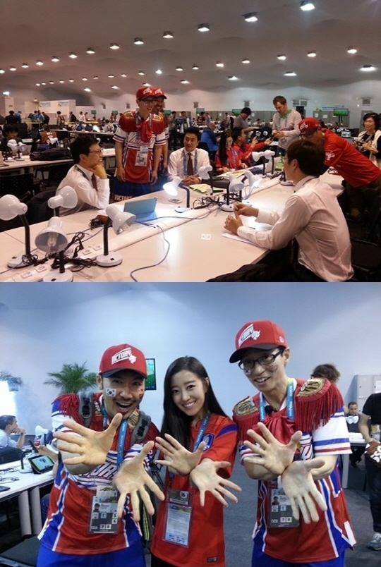 경기에 앞서 미디어센터에 도착한 유재석과 노홍철은 중계 준비 중인 김성주, 안정환, 송종국과 만남을 가지기도 했다.
