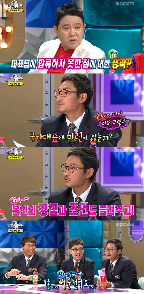 이날 MC 김구라는 이천수에게 "대표팀에 합류하지 못한 점에 대해 본인은 어떻게 생각하느냐"고 질문했고, 순간 당황한 이천수 대신 유상철이 입을 열었다.