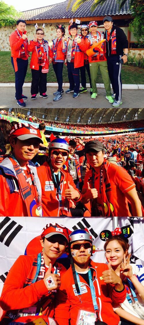 18일 오전 서울 종로구 세종로 광화문 광장에서 '2014 브라질월드컵' H조 한국 대 러시아 예선경기 거리응원이 펼쳐졌다. KBS2 '우리동네 예체능' 응원단이 붉은악마와 함께 응원을 펼치고 있다.