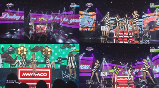 최근 온라인 커뮤니티 게시판에는 한 지상파 음악프로그램에 출연한 마마무의 타이틀곡 'Mr. 애매모호' MR 제거 영상이 게재돼 네티즌들의 관심을 받고 있다.