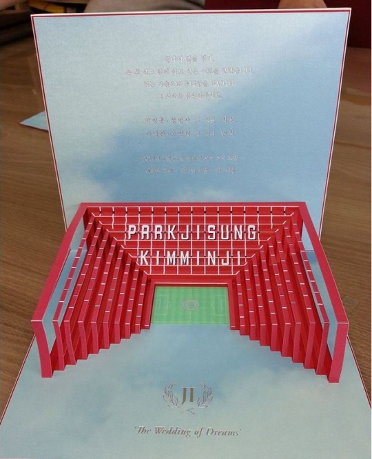 박지성 선수와 김민지 아나운서의 청첩장이 공개돼 화제를 모으고 있다.