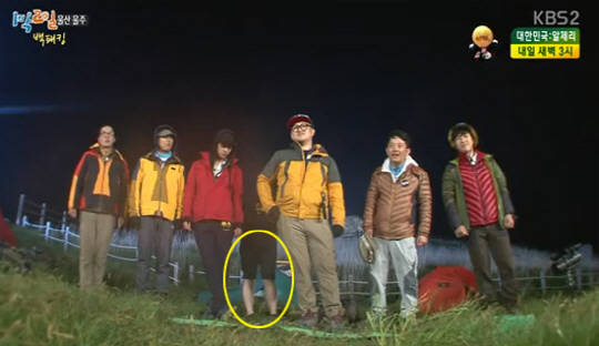 22일 방송된 '해피선데이-1박2일 시즌3'(이하 '1박2일')에서 상체가 없는 사람 다리가 포착됐다.