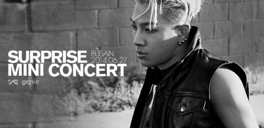 KT뮤직 관계자는 "음악사이트 지니를 통해 최고의 스타 태양의 신곡들을 즐겨 들었던 팬들이 부산 게릴라콘서트에 뜨거운 관심을 보였다"며 "27일 콘서트 현장의 뜨거운 열기를 다시 음악사이트 지니에서 느낄 수 있도록 준비할 예정"이라고 말했다.