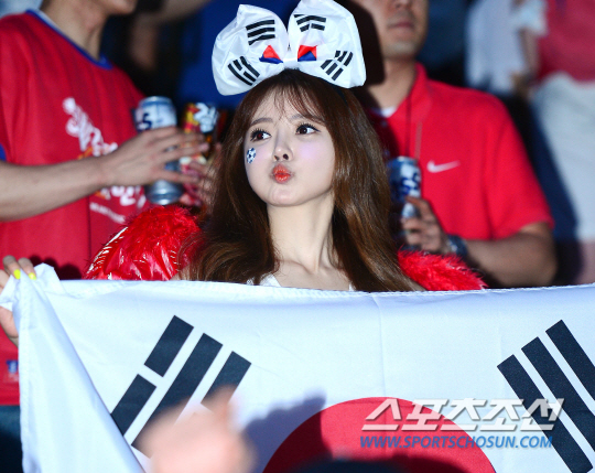 27일 새벽 서울 종로구 세종로 광화문 광장에서 '2014 브라질월드컵' H조 조별예선 3차전 한국 대 벨기에 경기 거리응원이 펼쳐졌다. 시민들의 시선을 사로잡은 미녀응원단이 눈길을 끌었다.