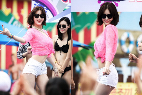 방송에서 박은지는 발랄한 핑크색 시스루 상의에 흰색 핫팬츠를 입고 섹시 매력을 마구 발산했다. 특히 날씬하면서도 탄탄한 바디라인을 가진 이기적인 몸매가 눈길을 끈다. 과감한 손짓과 자신감 있는 춤사위로 보기만해도 시원한 느낌을 주고 있는 것.