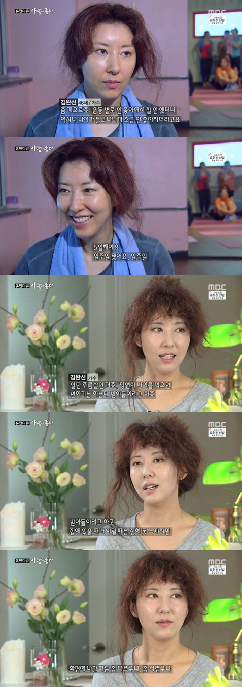 이날 김완선은 일어나자마자 세수도 하지 않은 채 요가학원을 찾았다. 김완선은 "나는 좀 게으른 스타일이다"며 "운동을 별로 안 좋아해서 잘 안 했더니 나이 들고 나니 조금 안 좋더라"고 털어놨다.