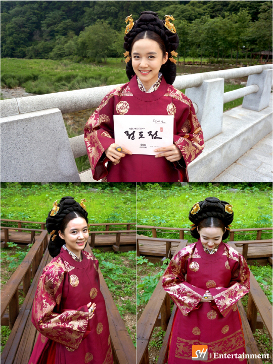 공개된 사진 속 고나은은 기품 넘치는 왕후로 변신한 채 '정도전' 마지막회 대본을 들고 단아하게 미소 짓고 있다. 또 다른 사진에서 양손을 가지런히 모은 고나은은 지금까지 '정도전'을 사랑해준 시청자들을 향해 감사의 배꼽인사를 해 눈길. 그동안 드라마 '아현동 마님', '보석 비빔밥', '결혼의 여신' 등 다양한 작품에서 활약하며 안방극장에 꾸준히 눈도장을 찍어 온 고나은은 드라마 '정도전'을 통해 데뷔 이후 첫 사극 연기에 도전, 대중의 주목을 받았다.