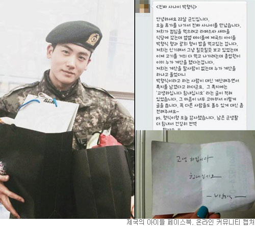 지난 28일 한 온라인 커뮤니티에는 '군인들 밥값 계산해준 박형식'이라는 제목으로 박형식에 얽힌 비화를 공개했다.