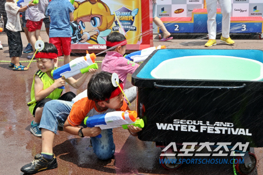 서울랜드 '세계의 광장' 일대에서 진행되는 이번 '워터 챔피언십'은 캐주얼 슈팅 게임 '버블파이터'를 모티브로 한 물총 대전으로, 블루팀, 레드팀으로 구성, 상대팀 머리에 부착된 타깃을 물총으로 맞혀 먼저 떨어뜨린 팀이 승리하게 되며, 토너먼트 방식으로 진행된다.